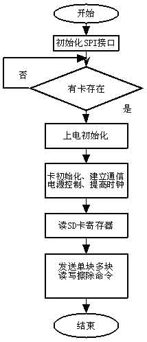 SD卡數據存儲軟件設計主要包括兩部分:SD卡的上電初始化過程和對SD卡的讀寫操作,其工作步驟如下。