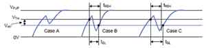 ● 該系統具有一個tREH(上升沿拖尾時間)定義的時間窗口,在這個窗口內,即使毛刺電壓低于門限VTH-VHY(如圖7 Case B,tGL
