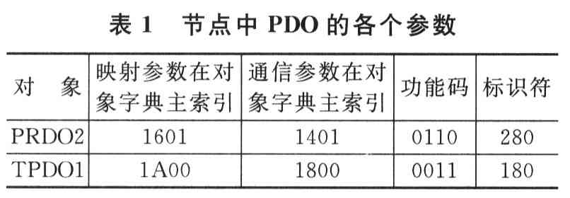 ??? 對(duì)象字典的內(nèi)容除了包括CANopen協(xié)議規(guī)定的必需項(xiàng)外,還包括調(diào)用的各功能模塊和參數(shù)設(shè)定項(xiàng)。它的正確配置和使用,是保證整個(gè)CANopen網(wǎng)絡(luò)正常運(yùn)行的核心,是節(jié)點(diǎn)實(shí)現(xiàn)其預(yù)定功能的必要保證。對(duì)象字典的組建采用C語言在頭文件中編寫,通過Struct(結(jié)構(gòu))語句實(shí)現(xiàn)對(duì)象字典內(nèi)容的尋址。對(duì)象字典的規(guī)劃賦值設(shè)計(jì)按照CANopen協(xié)議規(guī)定的格式完成,每個(gè)節(jié)點(diǎn)的對(duì)象字典都具有相同的結(jié)構(gòu),但具體內(nèi)容要根據(jù)不同的設(shè)備而定義,包含了描述這個(gè)設(shè)備和它網(wǎng)絡(luò)的所有參數(shù)。對(duì)象字典的操作是CANopen協(xié)議軟件的核心,通過對(duì)象字典實(shí)現(xiàn)網(wǎng)絡(luò)間參數(shù)的映射從而完成各種數(shù)據(jù)的處理,需要編寫對(duì)象字典解碼子函數(shù)、讀對(duì)象字典子函數(shù)和寫對(duì)象字典子函數(shù)。下面以溫度調(diào)節(jié)節(jié)點(diǎn)為例介紹對(duì)象字典的創(chuàng)建、賦值和具體操作。表1顯示了此節(jié)點(diǎn)中PDO的各個(gè)參數(shù)。
