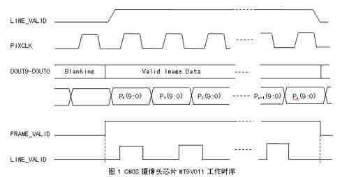 圖1 CMOS攝像頭芯片MT9V011工作時序