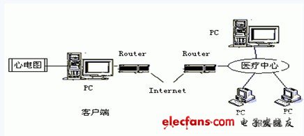 另一種是將從心電圖獲得的經處理的數據發送到遠程醫療中心,遠程醫療中心需要對這些數據再做進一步的分析和人工判斷。將最終的結論和建議返回給病人。這一步需要通過Internet網絡來實現。整個系統示意圖如圖4所示。?