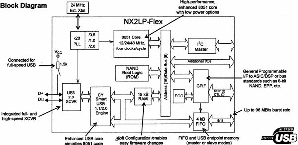 當前,市場供應許多種USB協議的接口芯片,不帶微控制器內核的有Philips公司的PDIUSBD12系列、NS公司的USBN9602系列等;帶微控制器內核的有Cypress公司的EZ- USB系列、Atmel公司的AT83C5134系列等。智能USB接口芯片將微控制器內核、USB接口引擎、USB收發模塊、存儲器、閃存或FPGA、串行口等功能集成在一起,從而減少芯片接口時序,減小引腳數和占用面積,是 USB接口芯片的發展方向。一種智能 USB接口芯片的方框圖如圖2所示。此外,還有 USB設備組網使用的集線器芯片、USB路由器芯片可供使用。