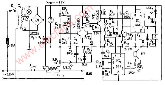 冰箱多功能報警器電路圖