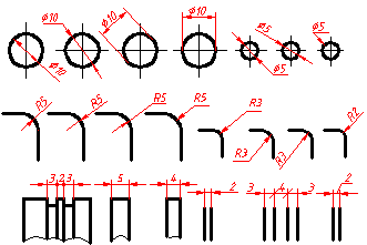 ② 相同直徑的圓孔可采用圖中的標注方法,如3×φ9,表示3個孔直徑為9。