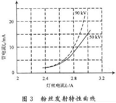 ??? 燈絲加熱電路的功能是發射電子,有直流電壓和交流電壓加熱兩種方法。圖3為某一型號 X射線球管的燈絲發射特性曲線。從圖中可知,X射線管的陽極電流(又稱為管電流)與兩個因素有關:燈絲加熱電壓和陽極高壓,但主要由燈絲加熱電壓決定。由于空間電荷的存在陽極電流與陽極高壓有關,因陽極高壓改變時,管內加速電場強度變化,陽極收集電子的能力發生相應的變化,從而導致陽極電流改變。為了保證 x線機陽極電流在整個輻照過程中一直穩定不變,在設計電路時就必須采用相應的控制方法。工頻供電X射線機中,多數設備是采用線性補償或電壓補償來抵消或抑制空間電荷的影響。這些方法不適合高頻逆變型X射線機的陽極電流控制。??