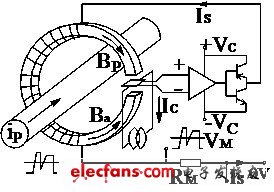 利用一個補償繞組產生磁場,通過閉環控制,使其與被測電流產生的磁場大小相等,方向相反,達到互相抵消的效果,此時,補償繞組中的電流正比與被測電流的大小,這種傳感器,被稱為閉環式或磁平衡式霍爾電流傳感器,由于