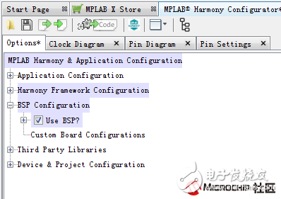 Microchip 的 MPLAB X + Harmony 軟件開發平臺通過 BSP(Board Support Package)文件將單板的硬件接口配置好了,用戶只需要選擇相應的 BSP 文件即可完成對硬件的配置,省去了大量的硬件調試工作。
