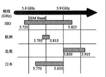 以美國提出的DSRC為技術(shù)基礎(chǔ),以發(fā)展ETC為契機(jī),從上世紀(jì)90年代到20世紀(jì)初,美國、日本、歐洲相繼為車輛通信技術(shù)分配了頻譜,制定了標(biāo)準(zhǔn),開始在汽車行業(yè)加以推廣。其中,美國選擇了5.9GHz,日本和歐洲則選擇了5.8GHz。雖然三地的標(biāo)準(zhǔn)有一定出入,但它們都基于同一套更基礎(chǔ)的標(biāo)準(zhǔn)——IEEE 802.11p。