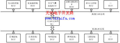 can總線在汽車網絡中的應用雖效率顯著單成本過高,LIN線恰好彌補這一不足,本文對比了CAN/LIN總線的性能特點,分別闡述了單CAN及單LIN網絡控制的缺陷,最后混合網絡控制方案