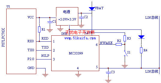 LIN(Local Interconnect Network)總線是基于UART/SCI(通用異步收發(fā)器/串行接口)的低成本串行通訊協議。其目標定位于車身網絡模塊節(jié)點間的低端通信,主要用于智能傳感器和執(zhí)行器的串行通信,而這正是CAN總線的帶寬和功能所不要求的部分。