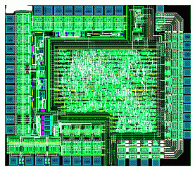 本系統采用0.5u mix signal 工藝,在成都國騰微電子有限公司的工作平臺的支持下,已經成功完成綜合驗證,版圖設計工作。綜合電路結構如圖7: