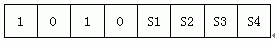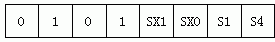 防扒車模式下,輸出的數據包也包括3個字節,但只有第一個字節為有效數據,后兩個字節無效,固定為‘0x00’。該數據包第一字節的數據格式如圖6所示,高四位為起始標志,用于說明此報警數據是倒車模式下的數據還是防扒車模式下的數據,倒車模式是“0101”,扒車模式是“1010”。低四位指示方位,SX位為1則表示X號探頭檢測到近距離障礙物,SX為0則表示沒有檢測到近距離障礙物。
