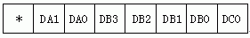 第三字節:第三字節輸出最近障礙物的距離值,數據格式如圖5所示,DA1DA0表示最近障礙物距離的第一位數據,按BCD編碼,最大值為3;DB0~DB3表示最近障礙物距離的第二位數據,按BCD編碼,最大值為9;DC0表示第三位數據,0表示0,1表示5。