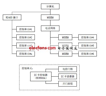 非接觸式IC卡是一種通過無線電波方式發送資料的卡,大小如信用卡,它全部用PVC封裝,具有防潮、耐腐蝕、抗干擾等特性,它的閱讀速度從零點幾秒到幾秒可調,它的閱讀距離最遠可達20cm或更遠(取決于設備的功率)。卡與讀感器之間在數據通信上具有雙向鑒別功能。在非接觸式IC卡中含唯一的、獨立的廠商序列代碼,而且卡上無任何裸露器件,所以在任何情況下不可能被仿制。因此采用非接觸式IC卡門禁監控網絡系統具有使用方便,可靠性高,安全性高等特點。本系統分成單門式門禁系統和聯網式門禁系統。