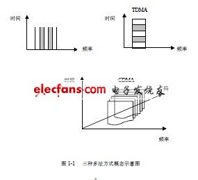 多址技術(shù)使眾多的用戶共用公共的通信線路。為使信號多路化而實現(xiàn)多址的方法基本上有三種,它們分別采用頻率、時間或代碼分隔的多址連接方式,即人們通常所稱的頻分多址(FDMA)、時分多址(TDMA)和碼分多址(CDMA)三種接入方式。