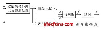 通過(guò)兩種輸入信號(hào)進(jìn)行判斷,當(dāng)兩種輸入信號(hào)滿足設(shè)定值且達(dá)到可靠設(shè)定時(shí)間時(shí),才能使觸發(fā)電壓達(dá)到預(yù)定值,并輸出觸發(fā)信號(hào)。文中針對(duì)這一思路進(jìn)行了電路實(shí)現(xiàn)的介紹。