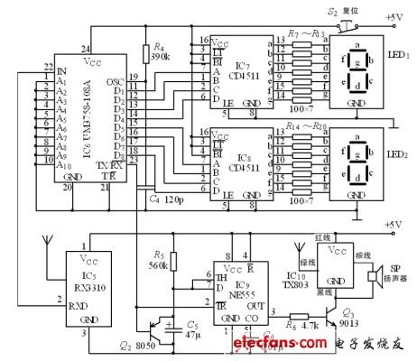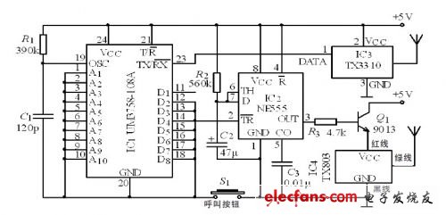 無線電呼叫系統(tǒng)編碼發(fā)射機電路圖