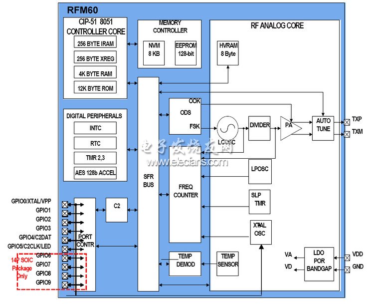RFM60 是一款高集成帶8051MCU 的RF 發(fā)射模塊,可工作在315/433/868/915Mhz 等ISM頻段,F(xiàn)SK,OOK 兩種調(diào)制方式,單電池供電,待機電流小于10nA,128 位