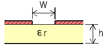 | 1. Input the parameter of the circuit board and center frequency. 2. (1) When the characteristic impedance (Zo) of the line width (w) is calculated. Input w, and click on [ Analyze ] button. (2) When the line width (w) of the characteristic impedance (Zo) is calculated. Input Zo, and click on [ Synthesis ] button. 3. A calculation result is indicated. [ Note ]Calculation precision gets bad outside the following range. * er=2.2~9.7 --- W/lambda : 0.0015~1.0 * er=9.7~20.0 --- W/h : 0.020~1.0 |
