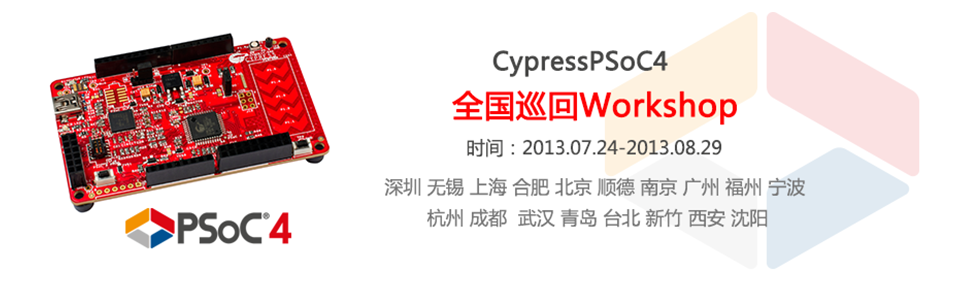 簡介:賽普拉斯及其分銷合作伙伴將于2013年7月至8月在大中華地區十八個城市舉辦巡回免費Workshop。最終報名參加并完成所有規定實驗者,即有機會獲得PSoC 4 Pioneer Kit開發工具。每場贈送數量有限,送完即止。您還可以在電子發燒友論壇Cypress技術專區,分享您的使用經驗或設計案例,有機會贏取更多獎品。